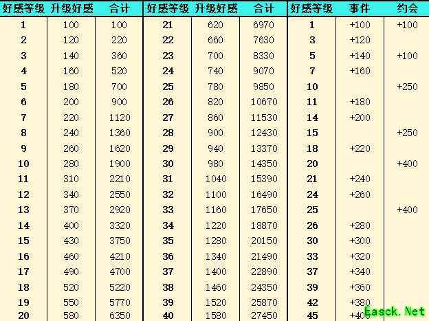 3、每个等级的礼物增加好感度分别为300>160>100>40。