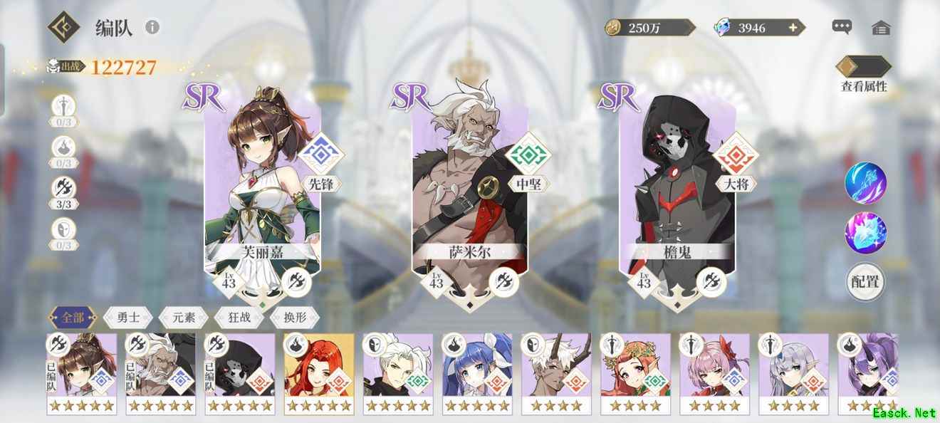 3、狂战士的短板就是身板子脆,且没有比较好的保命机制,萨米尔后期可以换成更高练度的狂战士主c兰奇,大反派萨米尔也是PVP跟PVE表现都不错的角色,前期过度非常舒服。