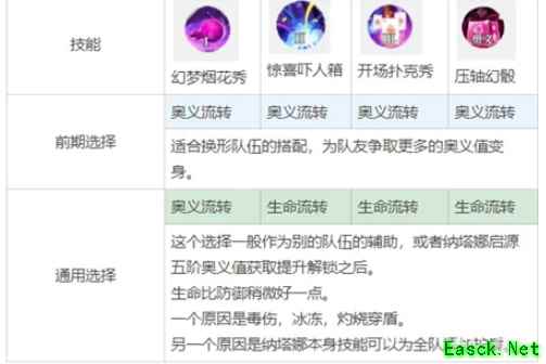 纳塔娜自身定位是作为一个辅助来使用的,主要依赖于技能三为全队叠加buff,必要时可以为全队回血或者加护盾。