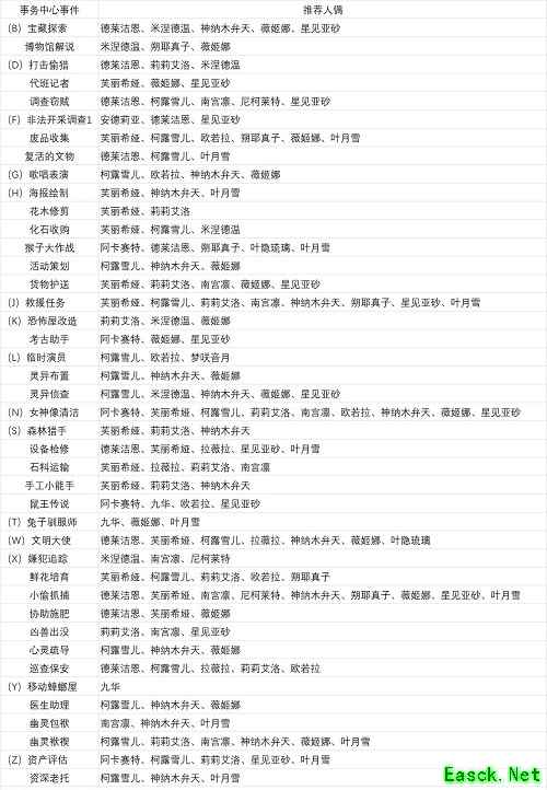 1、截止目前为止所有委托的阵容推荐如下图所示:
