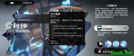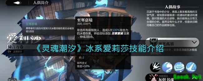 《灵魂潮汐》游戏中冰系爱莉莎技能自身的冰霜技能可以使15%目标的冻结抗性-15%和受到的冰霜伤害+5%/+8%/+10%,那么今天小编就给大家介绍一下灵魂潮汐冰系爱莉莎技能,有需要的小伙伴不要错过了。