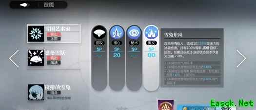 大招攻击两次,先攻击一次前排再攻击雪藏寓言一次后排(如果只有单排敌人就会攻击两次单排敌人),并添加雪藏寓言这个debuff 给目标(携带者会被视为处于冻结状态,我方友军如果添加冻结给目标会造成1次添加者50%攻击力的冰霜伤害),升到三级时使目标受到的冰霜伤害+50%