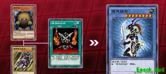 以仪式怪兽“混沌战士”为例,它需要通过仪式魔法“混沌的仪式”的效果,把等级合计为8以上的怪兽解放来特殊召唤。例如,当自己手牌和场上集齐等级7的“暗黑骑士盖亚”和等级1的“栗子球”时,发动“混沌的仪式”并将满足等级要求的怪兽解放即可从手牌将一只“混沌战士”仪式召唤到场上。