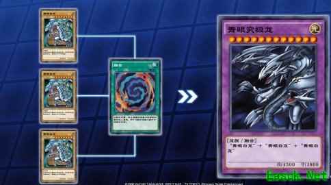 以融合怪兽“青眼究极龙”为例,它所需的融合素材为3只“青眼白龙”。当自己场上和手牌集齐3只“青眼白龙”时,发动“融合”魔法卡,将集齐的3只“青眼白龙”送去墓地,即可将“青眼究极龙”从额外卡组特殊召唤到场上。