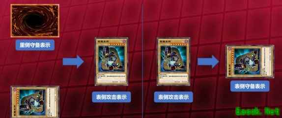 在改变表示形式时需注意的是,里侧守备表示和表侧守备表示的怪兽都可以改变为表侧攻击表示,但表侧攻击表示的怪兽只能变为表侧守备表示。