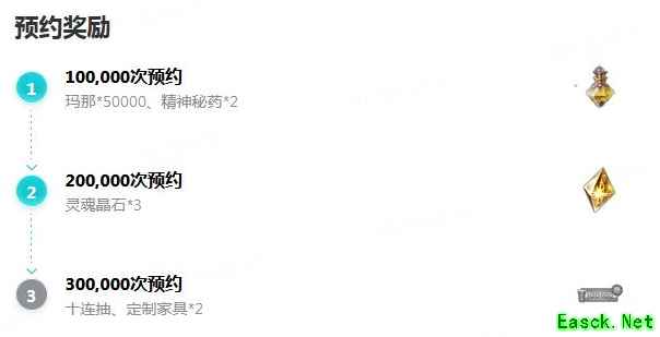 Tap预约人数达到30w,精神秘药*2、玛那*50000、灵魂晶石*3、十连抽、Tap定制纪念家具*2,将在公测送给大家!(各档位奖励是累计发放的哦!)
