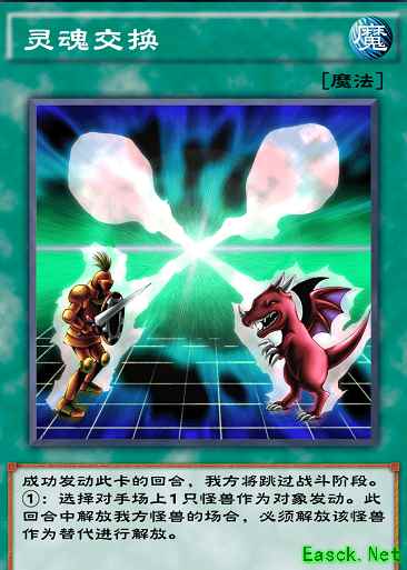 利用“灵魂交换”的效果,可以解放对方场上的怪兽来进行解放召唤,更容易召唤出强力的上级怪兽。