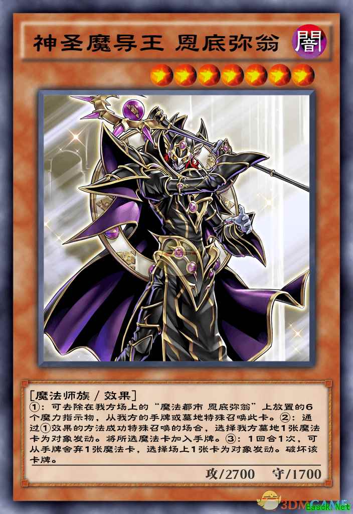 “神圣魔导王 恩底弥翁”1回合1次,可从手牌弃置1张魔法卡,破坏场上1张卡牌。