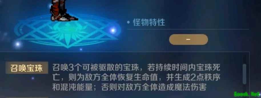 进入关卡后我们不要用技能,在boss召唤法球后用aoe角色清掉法球,当我们清掉4次法球后boss会释放4技能持续对我们造成伤害,因为boss的1技能我们的秩序能量不会自然恢复,回复角色是是没有能量恢复我们的血量的(这里就要说一下为什么上面要说其中一个角色要比回复角色脆了),这时我们就需要其中一个角色死亡来破除boss的一技能,使我们的秩序能量会自然恢复,然后一直用我们拥有恢复能力的角色慢慢磨死boss即可。