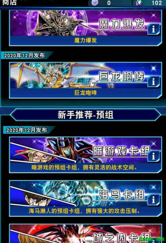 在进行升级的同时也不要忘记优化自己的卡组,决斗链接国服开服活动非常丰厚,玩家可以获取非常多的奖励。即便选用的是海马开局也一定要将三个新手卡组都买了,对于海马的卡组而言其它两个新手卡组中的关键牌也能拿来使用,能够更好地优化玩家卡组,让海马开局更加顺利。之后可以根据宝石数量酌情购买一到两套巨龙咆哮卡组,获取关键卡弧光龙以及龙骑士。