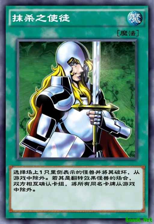 下魔法卡"抹杀之使徒",玩效果卡组的遇到它可就是一万个头疼了,老玩家大概都知道,在游戏王中,"攻击值与卡牌效果不可兼得",这也使得许多效果怪兽会开局进行守备表示来确保自己的效果打出