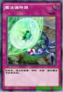 「魔法偏转器」可以无效场上装备魔法卡的效果。如果装备魔法卡的效果被无效,仍然会以无效的状态装备在选择的怪兽上。