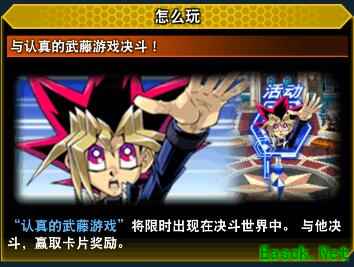 认真的武藤游戏类似之前的龙崎活动,是一个特殊的NPC决斗者,和他战斗一定次数能获得奖励,比如战斗五次能解锁角色表游戏