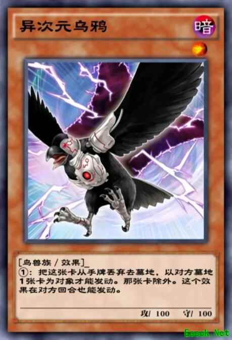 另外,异次元乌鸦是国服相对国际服提早了很久出的,对很多以后的卡组有不小的影响。?异次元乌鸦在很多情况下会是个比较好的环境针对卡,想打竞技的话有一到两张还是不错的。