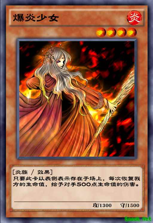 爆炎少女是这套卡组的主力输出,主要是通过这张卡表侧表示存在于场上,每次在回血的时候给予对手500点的伤害。而这套卡组回血的手段,主要是通过士气高扬这张卡来得以施展的。这张卡拥有每次将装备魔法卡装备在怪兽上面时,控制者会回复1000生命值的作用,这也就意味着我们可以通过士气高扬的效果来进行回血,而爆炎少女进行输出。