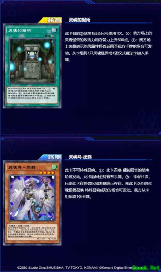 召唤风属性的灵魂怪兽「灵魂鸟-巫鹤」,回合结束阶段,灵魂怪兽要回到手牌,由此触发「灵魂的据所」的效果:我方场上的风属性怪兽回到手牌的场合,可将卡组的灵魂怪兽或仪式魔法卡加入手牌,将仪式召唤与灵魂怪兽连接起来。