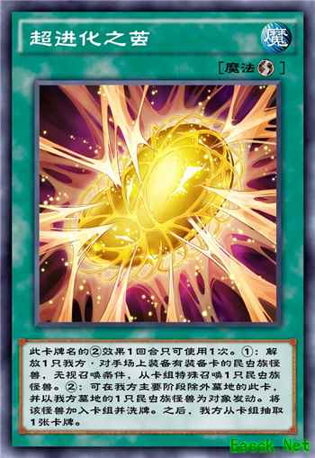 一效果解放双方有装备卡的昆虫族怪兽从牌组内特召昆虫族怪兽,可以高效拉出昆虫族大怪如昆虫女王,内战也有相当程度的发挥空间。
