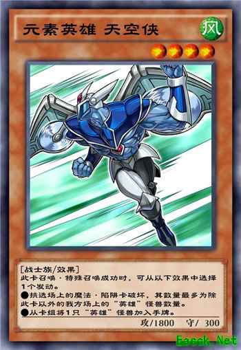 英雄卡组的绝对核心卡,通召或特召后都可以检索一只英雄怪兽,是稳定赚卡点。检索的怪兽也仅仅限制英雄字段,所有英雄卡组都可以投入作为润滑剂使用,可以说未来的使用前景非常之广。二效果可以不取对象破坏魔陷,也可以缓解英雄卡组面对重坑卡组时的尴尬局面。