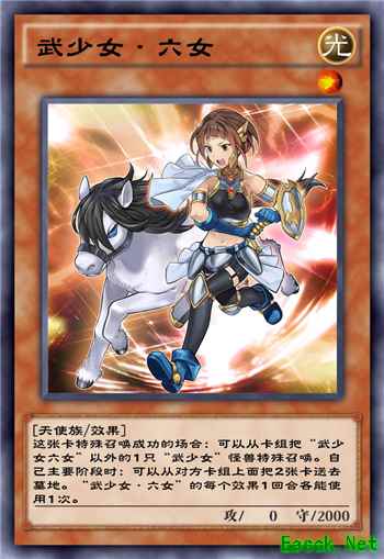 武少女卡组的核心之一,有着被特招时从卡组额外召唤武少女的效果,可以称得上是武少女卡组展开的关键一环了。