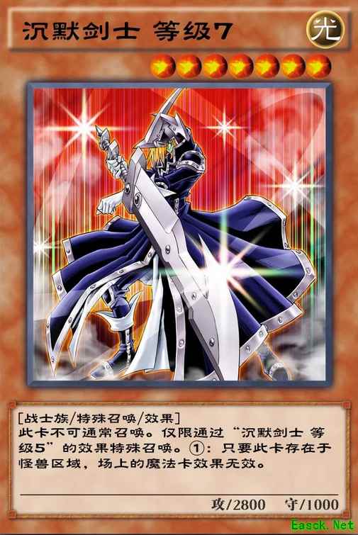 ③:这张卡被战斗或者对方的效果破坏的场合才能发动。从手卡·卡组把「沉默剑士」以外的1只「沉默剑士」怪兽无视召唤条件特殊召唤。