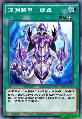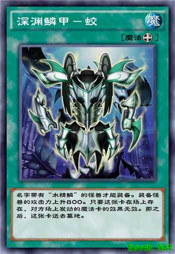 水精鳞专用加800攻的装备且可以无效一次对方魔法卡的效果。