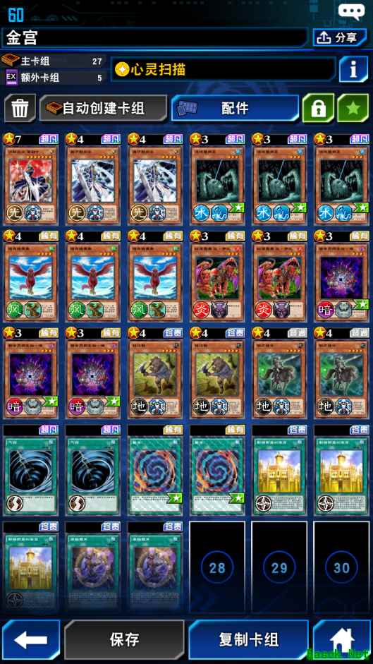 此卡组总计27张卡,其实相比26卡有着一定隐患。如果金宫只能拉一张怪。会出现卡组除外2次10张的问题。但这个几率很小,通常不会出现,介意这个的可以自行去一张。