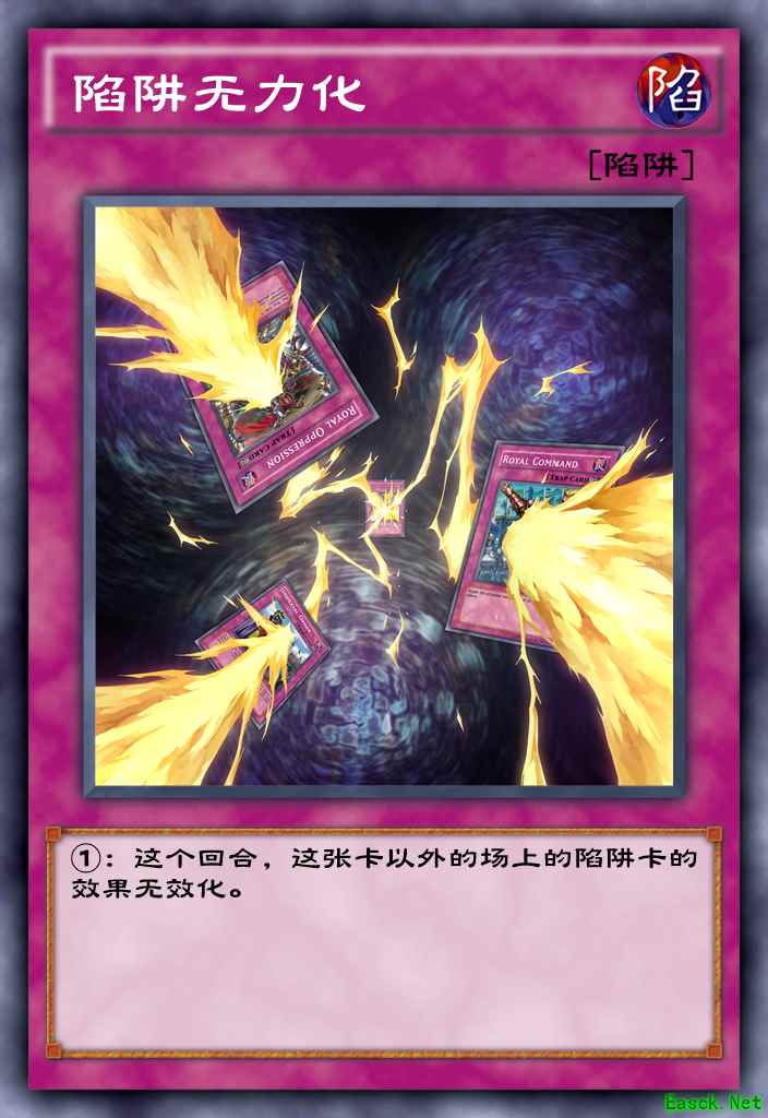 此回合,让此卡以外的场上的陷阱卡效果无效。可以在对手发动陷阱卡时连锁发动此卡,使那张陷阱卡以及之后发动的所有陷阱卡的效果全部无效!