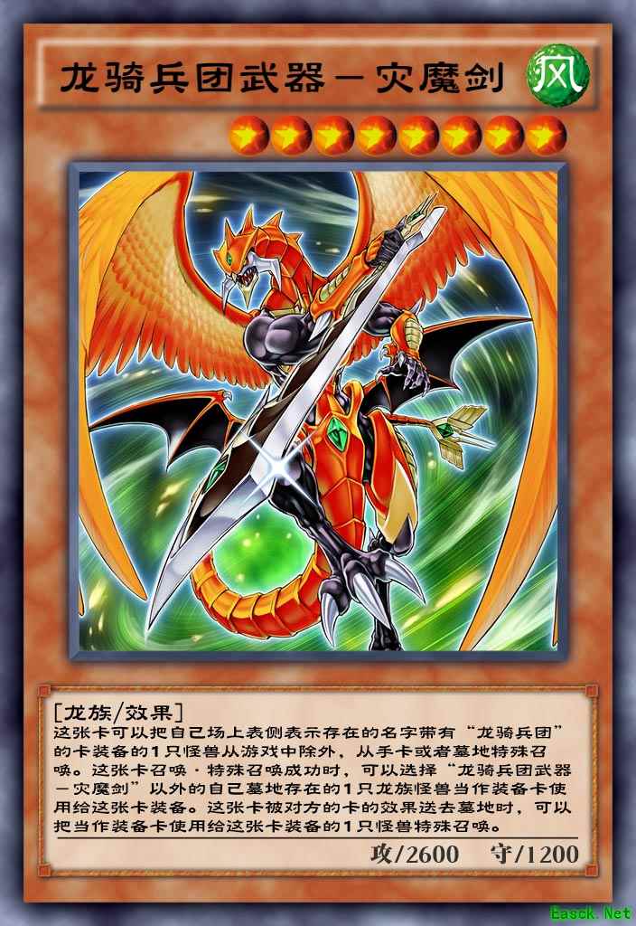 在手卡墓地时可以通过除外场上有装备龙骑兵团卡的怪兽來特召,特召后可以在装备墓地龙族怪兽,配合方阵龙可以很轻松的出本家终端大哥,被卡效送去墓地时还可以特召自身装备的怪兽。