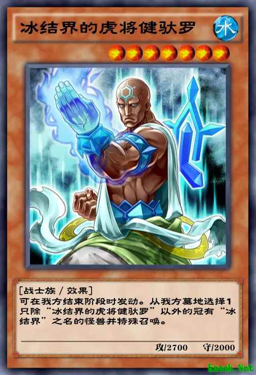 冰结界的虎将健驮罗2700的打点,用三方阵特招后随便召唤冰结界的舞姬、冰结界的军师、冰结界的武士任意一只即可斩杀。而冰结界的虎将神兵特招后可以额外通召一只冰结界的怪兽,即使对方带了生命值增加α也能斩杀。冰结界的交灵师2200打点,只有配合冰结界的武士才能堪堪达到4000的斩杀线。