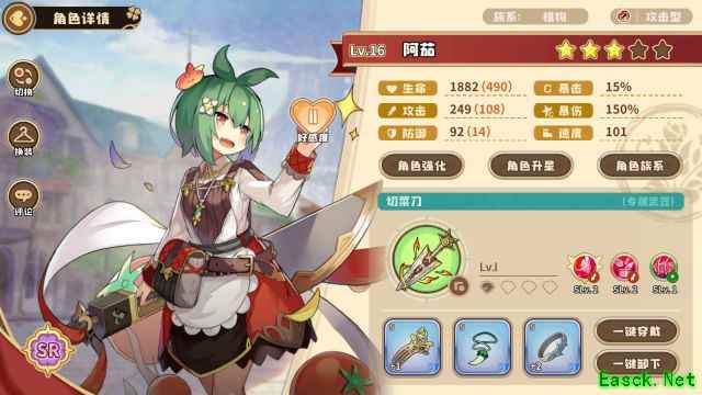 装备栏:显示目前所佩戴的头饰、项链和戒指,以及其强化等级;