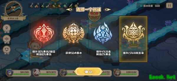在这里建议首选4(攻防生命+1.5%)。2(50露水)永远不要选,因为打怪就给。