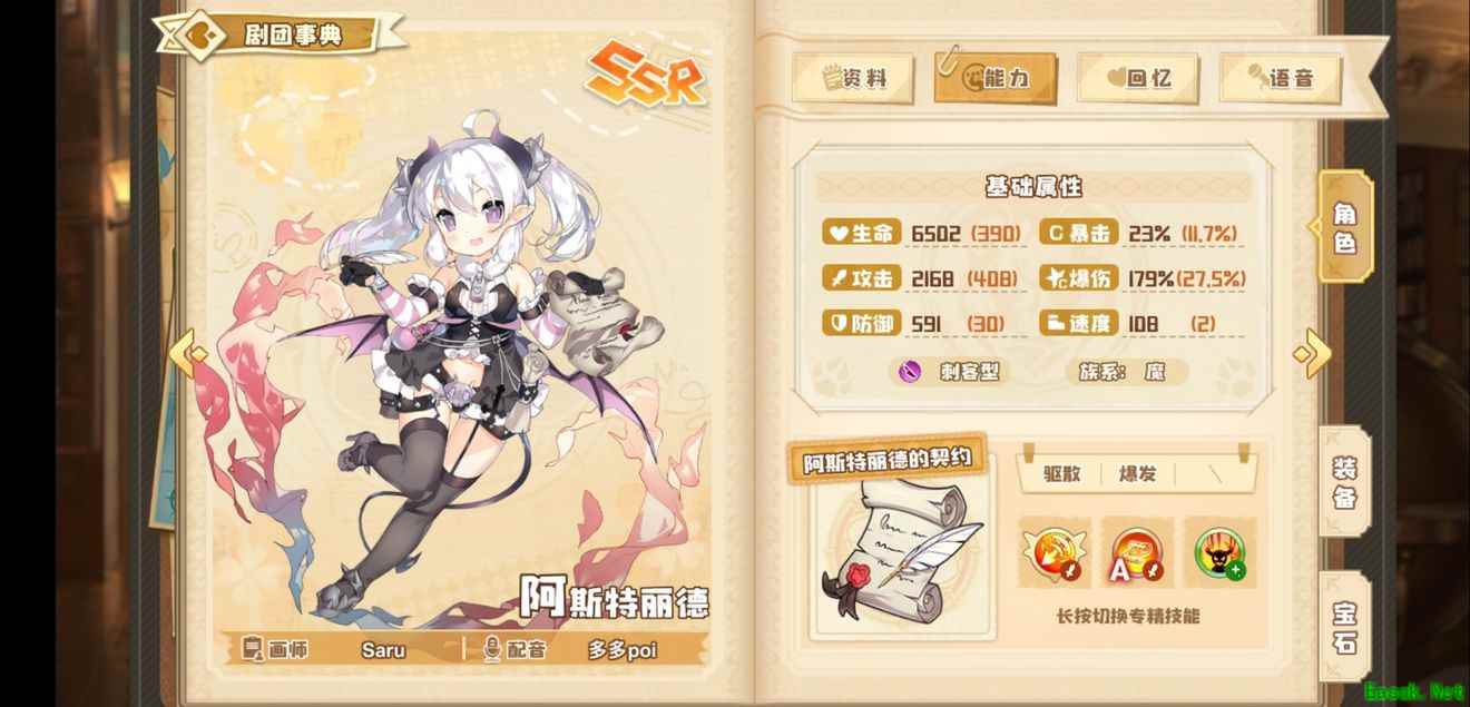 冈格尼尔的穿墙效果很是不错,4星小恶魔暴击就能有7000左右的伤害,像类似人马这种就是真•纸片人。注意小恶魔的速度不需要太高,太高的话不仅偷不到Buff,冈格尼尔也不太容易有加成。如果有红玉可以选择不用,但像人鱼这样的刺客在竞技场里是没法儿和小恶魔相提并论的。