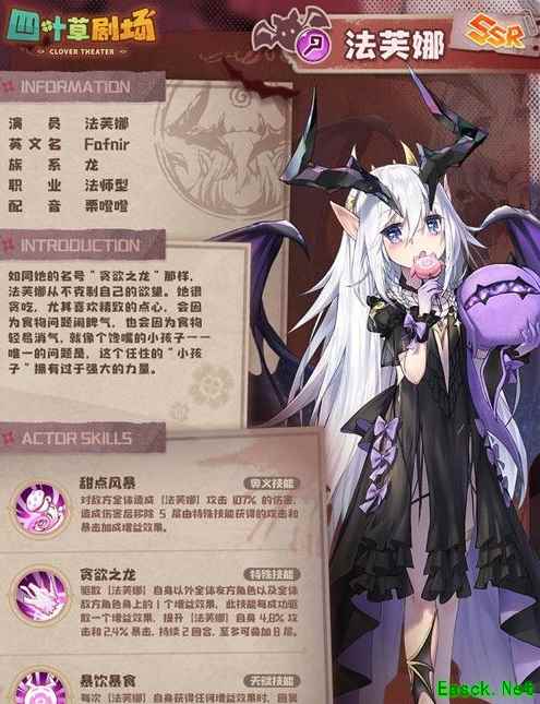 四叶草剧场法芙娜厉害吗?《四叶草剧场》游戏中法芙娜是即将上线的先SSR角色,那么她的技能强度怎么样呢?今天小编就给大家介绍一下四叶草剧场法芙娜技能强度,有需要的小伙伴不要错过了。