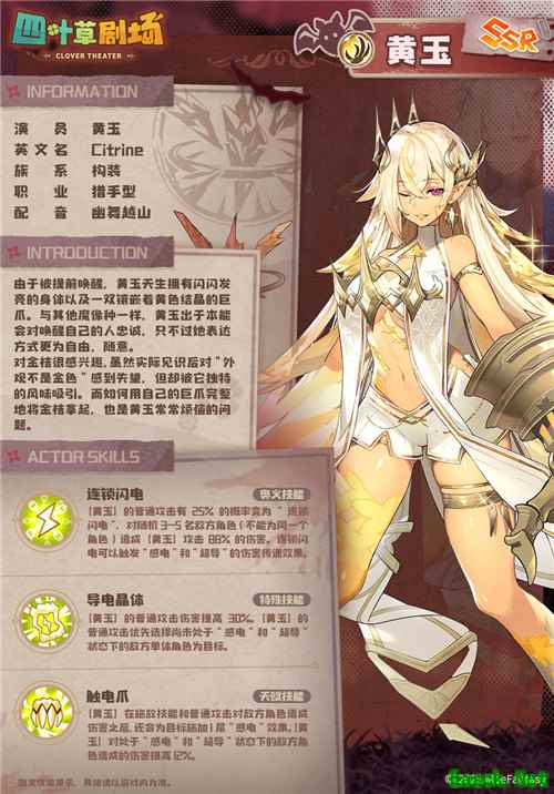 四叶草剧场黄玉怎么样?黄玉是游戏内即将上线的全新角色,相信很多玩家对这个角色并不是很了解。下面就让小编给大家带来《四叶草剧场》黄玉技能介绍,感兴趣的玩家一起来看看吧。