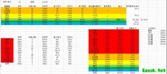 1.素材部分,“是否更优”是与素材十对比,“等效素材本体力”意为获取一次素材十掉落材料所需体力。