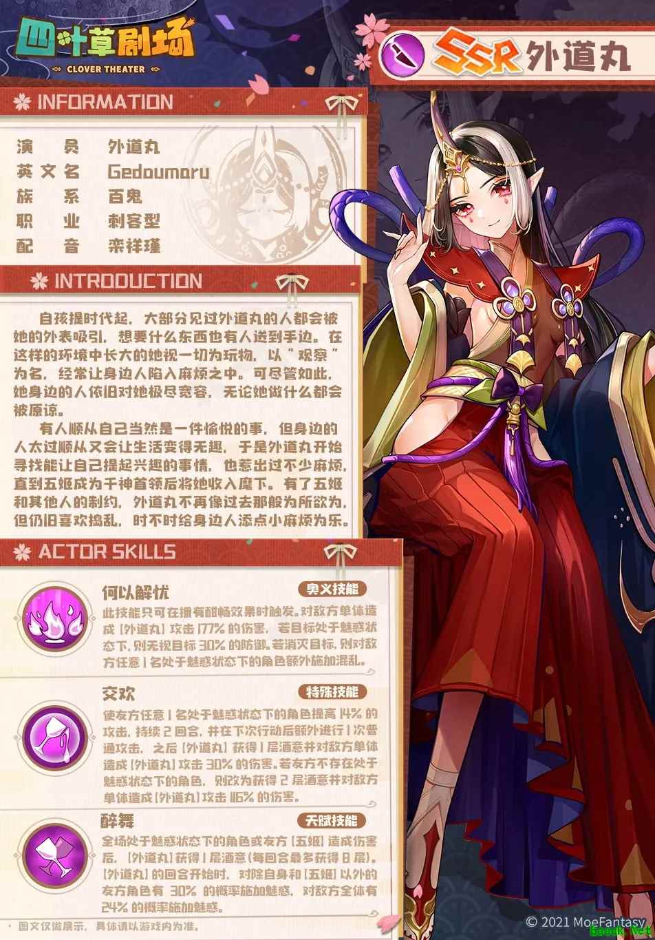 以上就是小编给大家带来的《四叶草剧场》外道丸介绍的全部内容了,更多手游攻略请关注易采游戏网!