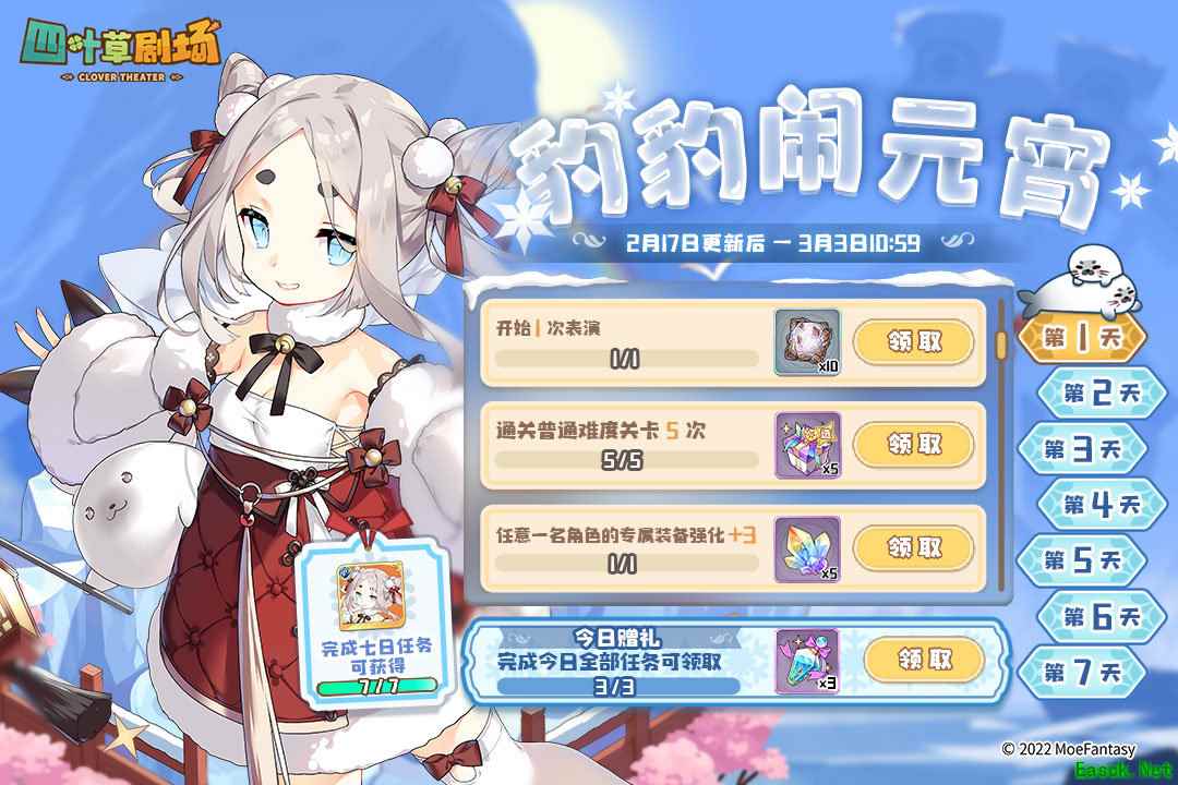 《四叶草剧场》游戏中豹豹闹元宵活动2月17日更新后就要上线了,玩家们每日登录游戏并达成当日目标即可获得丰厚奖励。那么今天小编就给大家介绍一下四叶草剧场豹豹闹元宵活动玩法攻略,有需要的小伙伴不要错过了。