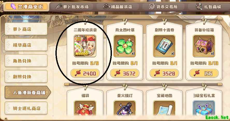 500体力刷一次图,100%进度获得620活动材料(有可能会上调),攒活动材料去人鱼港新春商店兑换奖励