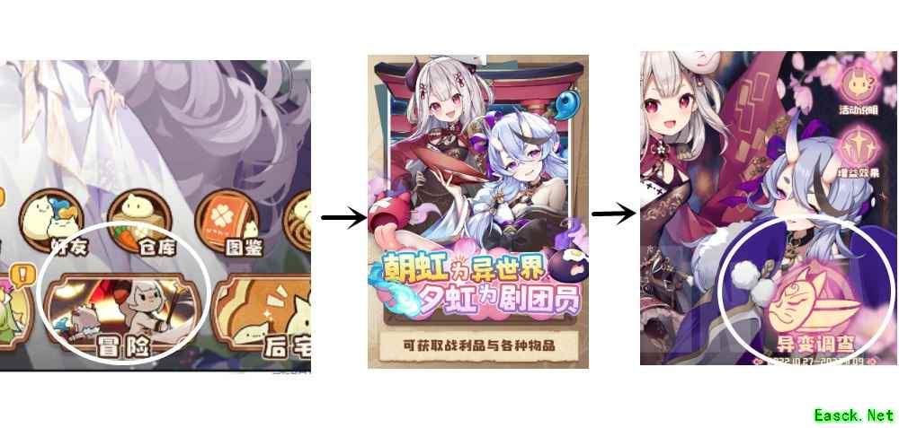 活动图:从冒险进--拉到最后“朝虹为异世界,夕虹为剧团员”--点击异变调查