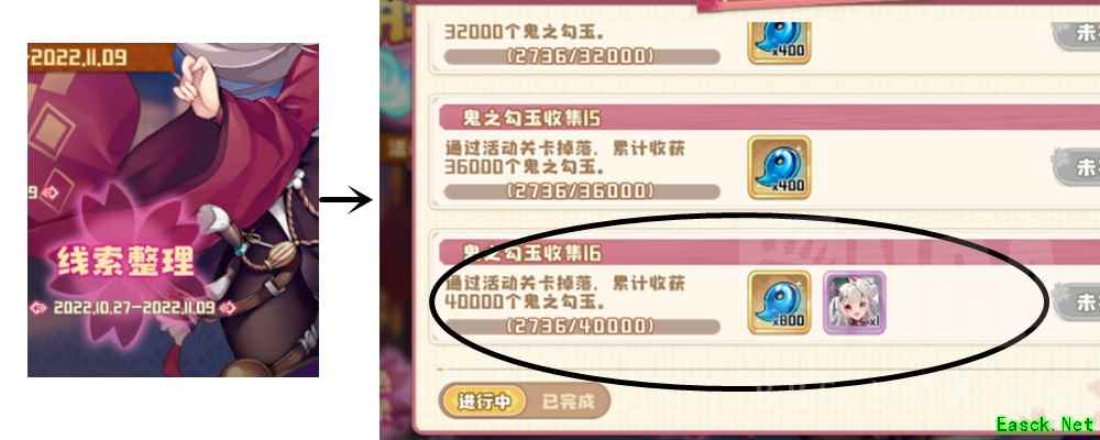 最后切记!!!要完成线索整理里的成就任务,其中需要刷4W的勾玉完成成就任务拿2个限定活动剧照