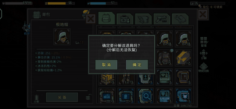 1、像是怪物入侵之类的模式会获得很多无用的绿色装备,占用大量的背包空间,这时候就可以用到分解功能。