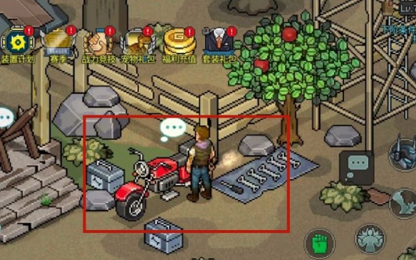 再上面的摩托车是清除怪物、讨伐怪物的入口。上面的苹果树可以摘苹果,旁边的电视机可以看电视和领硬币。