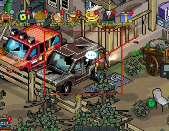 吉普车旁边的末日游商那里可以买一些道具,像是配件箱、宠物箱、晶石、加速道具啥的。