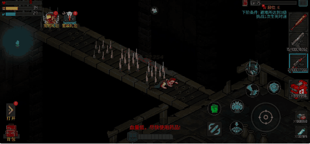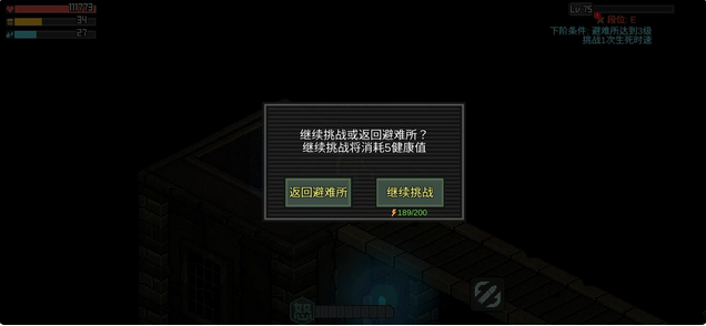 在死亡后,就会跳出选择窗口,是回到避难所还是继续挑战,继续挑战的话,会消耗五点健康值,回到本层的初始点重新过关。另外,还有一些怪物会安放炸药,没有及时避开的话也会受到高额的伤害。