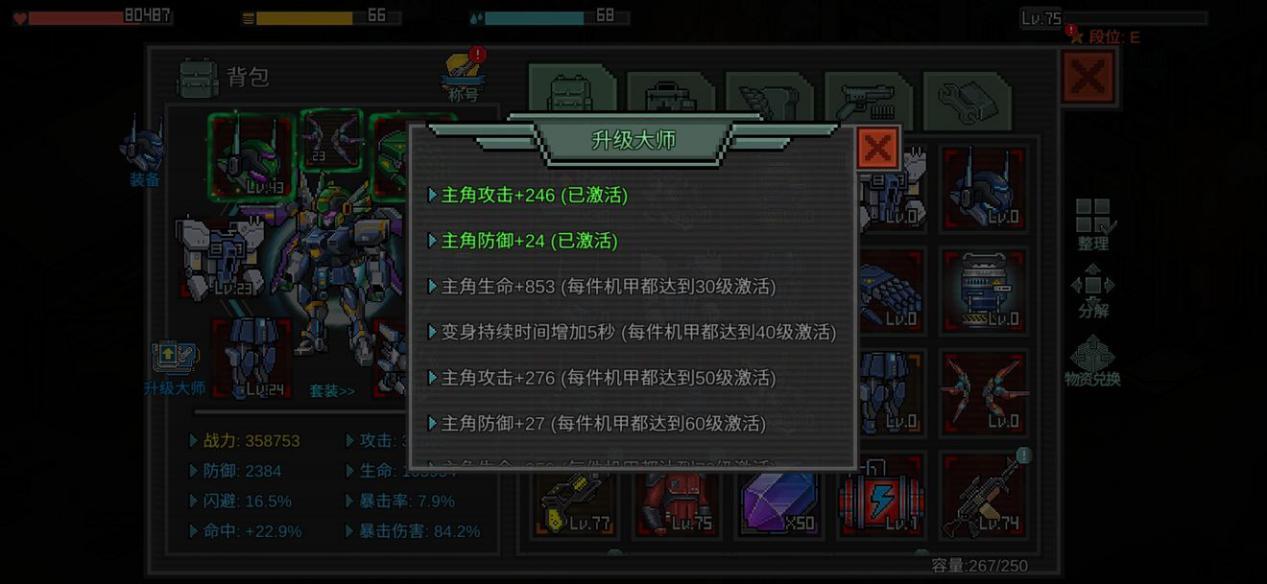 机甲除了有不同款式和属性外,所有机甲部件达到指定等级后,还将激活【升级】大师属性。