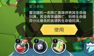答:目前我遇到的主要是三类道具,生命药水(回血30%)、魔法炸弹(炸掉拦路怪物)、复活卷轴(复活一名阵亡英雄)。可能后续会有更多道具,目前我遇到的就只有这三个,最好用的是魔法炸弹,一弹必杀!