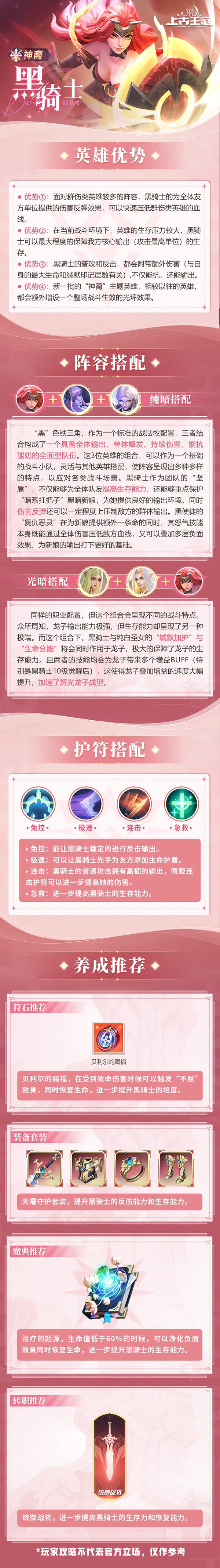 《上古王冠》游戏中神裔黑骑士是新上线的暗系英雄,很多玩家不知道怎么搭配阵容,技能是什么,那么今天小编就给大家介绍一下上古王冠神裔黑骑士玩法攻略,有需要的小伙伴不要错过了。