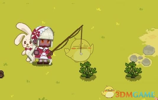 玫瑰长成后,操作角色拿着钓竿走到玫瑰丛,将玫瑰的刺当做钓钩安装在钓竿上。