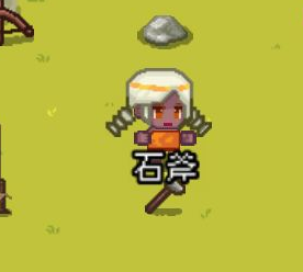 最后用圆石磨一块尖石,用尖石跟绳系短棍组合在一起获得一把石斧。