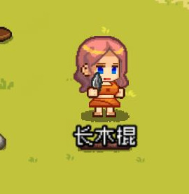 3、接下来用事先准备好的燧石片和长木棍组成在一起就变成了木钳
